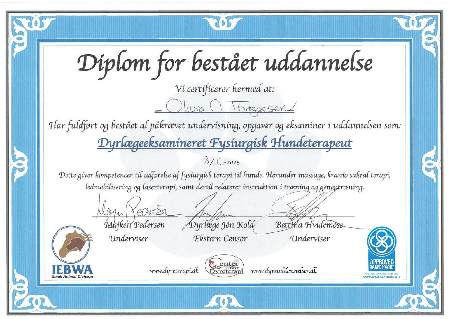 Derfor arbejder jeg med individer; ikke skemaer eller skabeloner. Dette afsæt gælder både mit fysiurgiske arbejde og det træningsmæssige, i hundehøjde såvel som på det menneskelige plan.